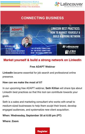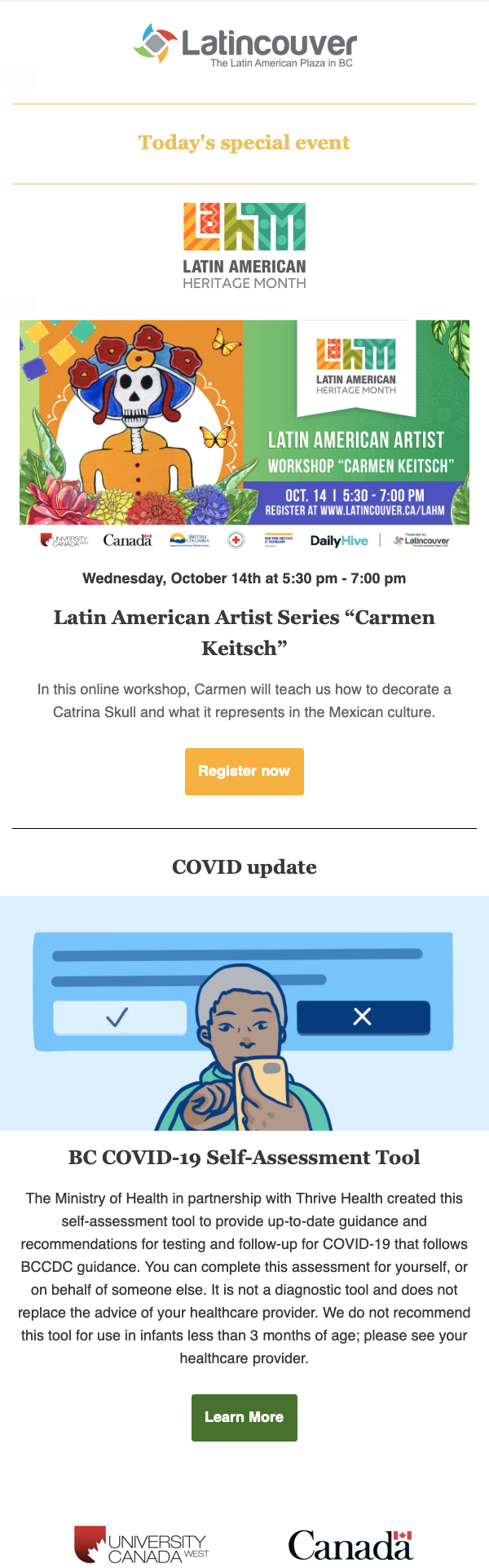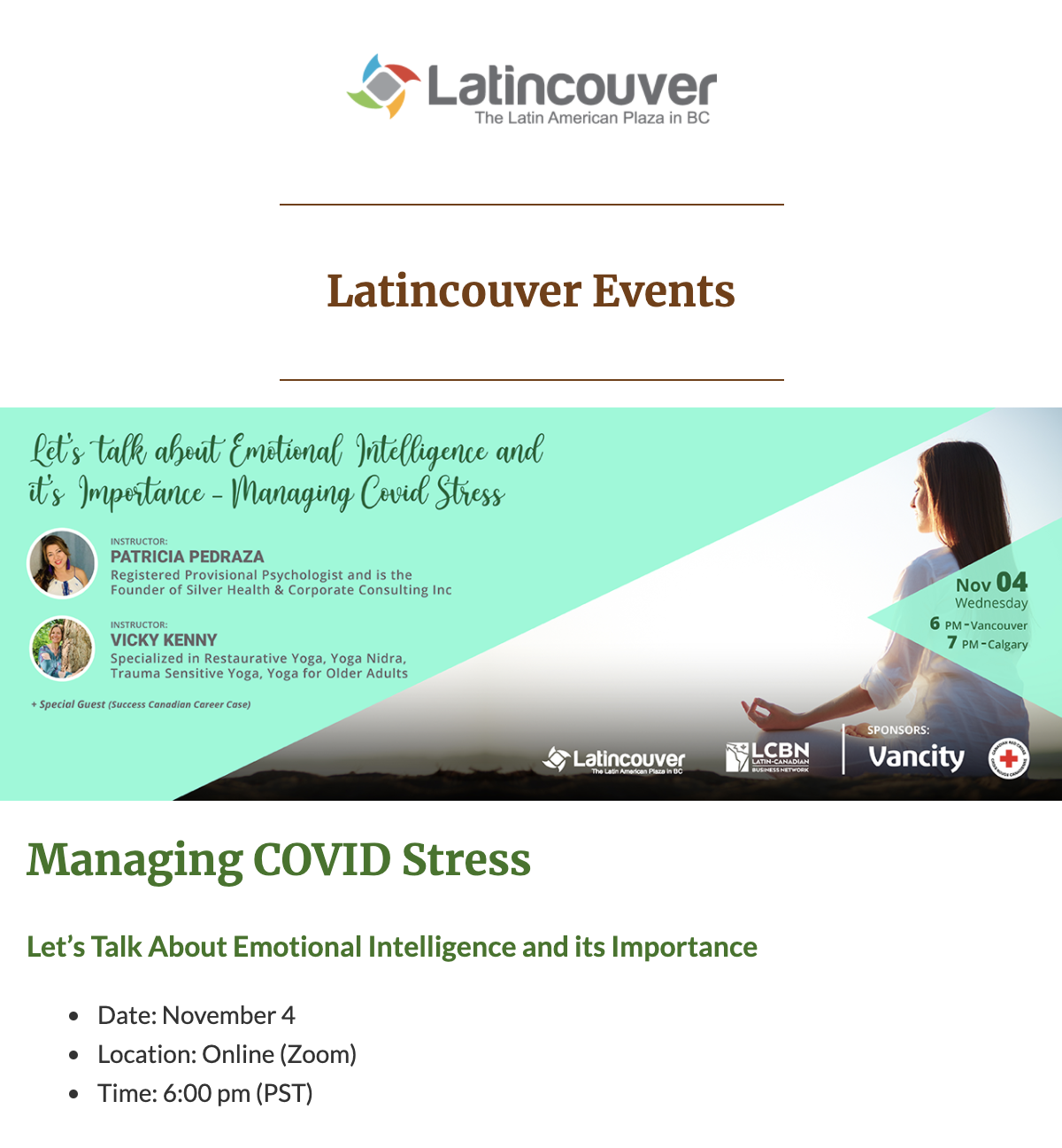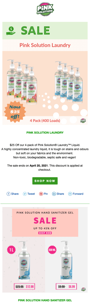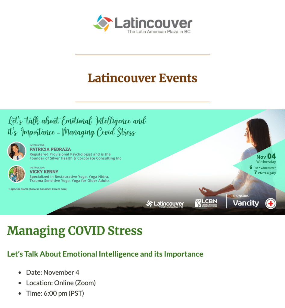I prepared email (newsletter) content and designs for Pink Solution and Latincouver. I use MailChimp and Infusion Soft platforms and did the postings and prepared reports of conversions.